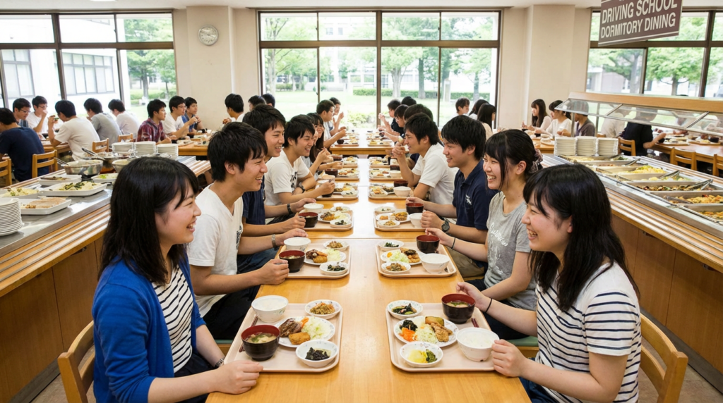 多くの場合、宿舎や校舎の食堂で食事をすることになります。教習所によっては、バイキング形式で食事を提供しているところもあります。